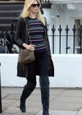 This season, over the knee boots are in fashion again. Today they are presented on the catwalks in all kinds of options: low and high heels, on the platform, in varnish and leather, with and without patterns. Girls whose height allows you to wear such shoes will surely find something to their taste.