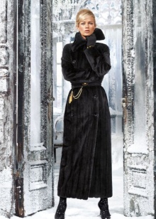 Products decorated with fur will make up an ensemble with a fur coat or coat with a fur trim. The classic style of stiletto heels is simply created for an adjacent silhouette coat with a flared skirt. Black models with outerwear of the same shade with a golden or beige print will look most advantageous. The cut of clothes is minimally simple and is decorated with a small fur trim around the collar.