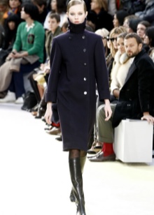 The glossy patent leather boots themselves are pretty bright. Combined with a high hairpin, they become a catchy attribute of the ensemble. Such shoes go well with tight trousers and a short coat of a straight or fitted silhouette with a fur trim on the collar. Coat black patent leather boots with light shades.