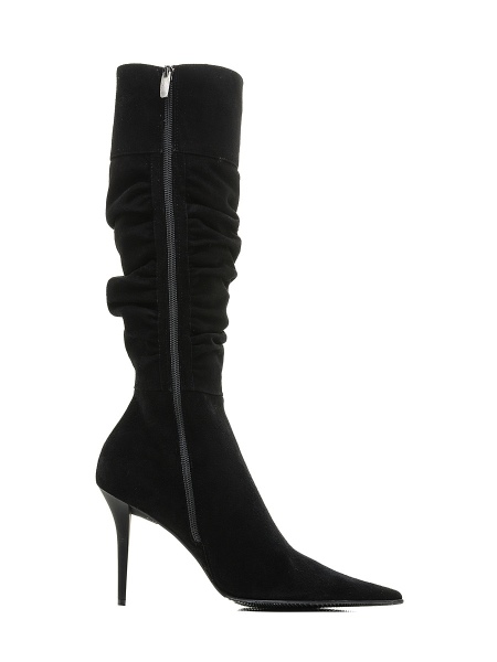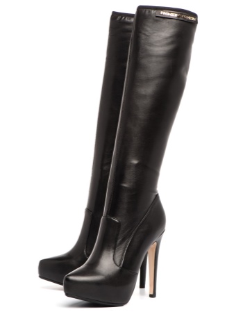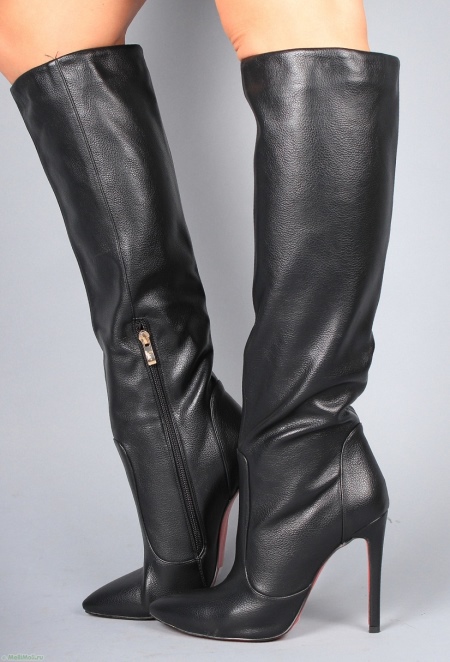 Elegant high-heeled boots are recognized as an ideal attribute of a special outfit. The height of the hairpin varies from small sizes (7-10 cm) to 14 cm. The main advantage of the models is the ability to make legs slimmer, and the figure is proportional. Any outfit complemented by stiletto heels becomes spectacular and attracts attention.