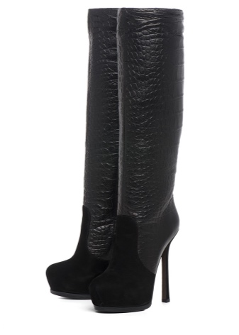 The catwalk options that attract the attention of fashionistas can have a transparent heel and a gilded ornament, merging with the color of the shaft. Fashion designers emphasize the relevance of combined models: winter boots can combine different skin texture, combine it with suede and textile. Often, reptile skin print is used as inserts. The style of models with a wide boot is as simple as possible and has a different platform height.
