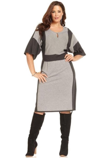 Options with a free top look good with skinny jeans. To make the legs appear longer, you can wear tight trousers or leggings with boots matching the tone of the color of the boots. A sweater with a large knit, a sweatshirt and a jacket will become a good horse to such an ensemble.