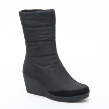 Winter wedge boots can have a tractor sole and a wide solid sole shape. Shoes are perfect for long winters with ice. Warm winter boots can be high or low (like ankle boots or warm boots). They are reliable, comfortable and safe in any snowstorm thanks to a stable shoe.