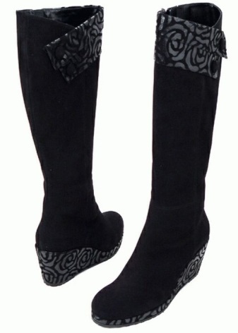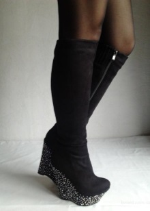 Suede wedge boots have a velvety surface, which attracts the attention of young women in the fashion world. Stylish shoes are more suitable for ceremonial wear in dry weather. Such shoes look incredibly catchy, flirty, elegant and original. Especially if there are few decorative elements on it.