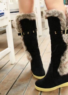 Winter wedge boots also deserve attention. Here, the sole of a curved shape has a denser structure for protection from the cold. The sole of most models of winter boots has a special ribbed non-slip surface. Stylish winter wedge boots can be successfully combined with a short fur coat or a shortened down jacket. A short woolen dress can be worn underneath.