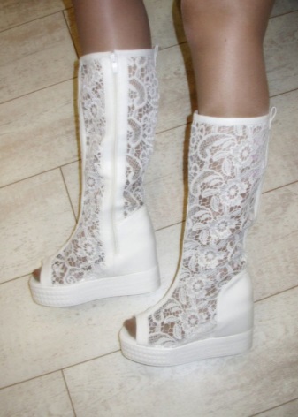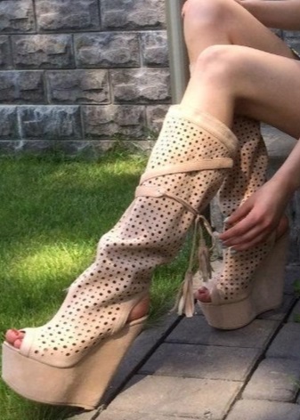 Summer options for shoes in the form of wedge boots can most likely be attributed to the original models to decorate the image. For example, summer wedge boots with expressive decor look attractive and feminine. We are talking about "breathing" boots with lace. Various straps, braid, brushes, metal inserts will decorate any model for the summer.
