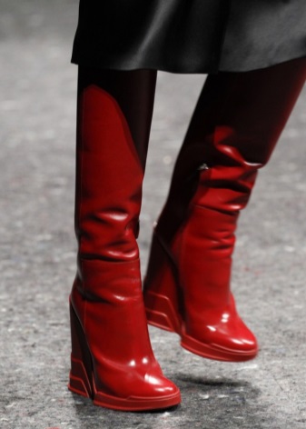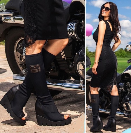 Fashionable wedge boots, both long and short, can be models of shoes for all occasions. The length of the boots emphasizes the harmony of the legs, makes the figure visually slim, fit. Long wedge boots may resemble treads. And shortened type boots compete with wedge shoes.