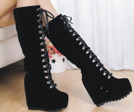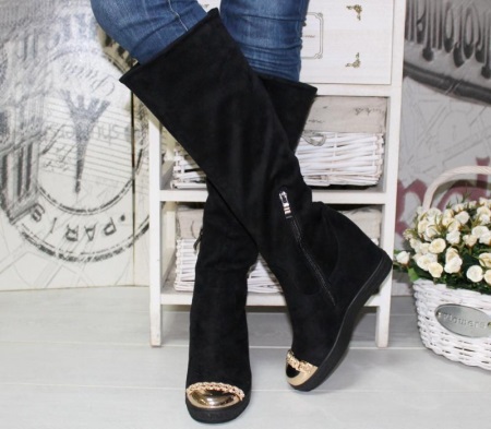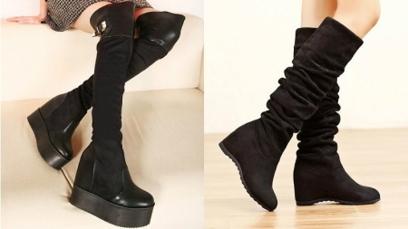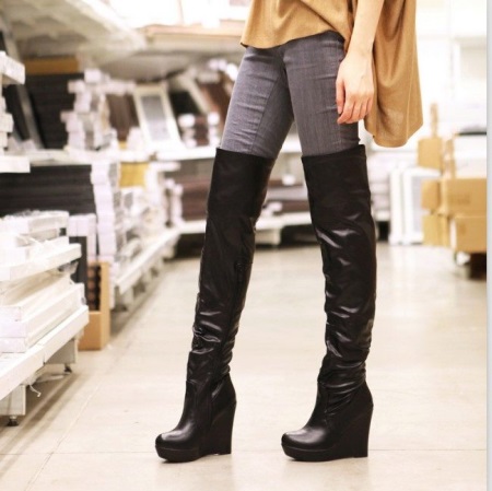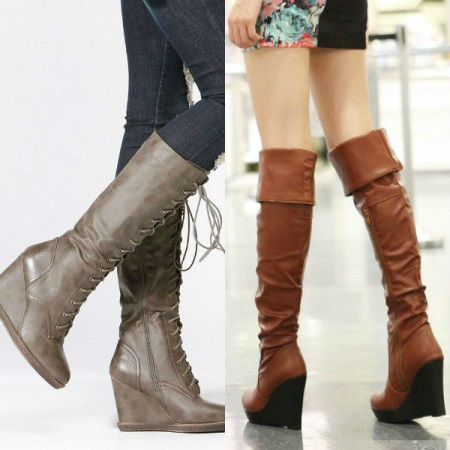 The choice of the length of the boots depends not only on the growth of the fashionista, but also on the features of the figure. Short legs are usually “lengthened” with high-heeled boots. Wedges are not for everyone, but they have a more universal character.