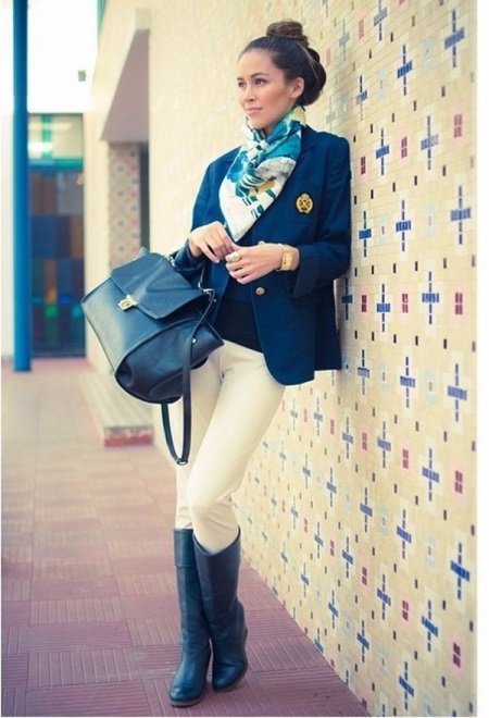 Blue wedge boots are also considered bright and independent elements of the wardrobe. To combine with blue, a varied palette is suitable - from burgundy to fuchsia. With a blue bottom, the yellow top looks great.