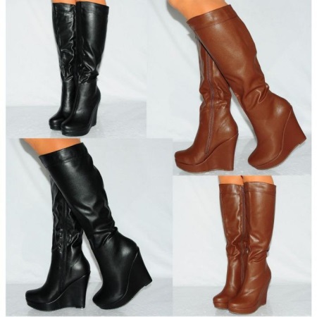 When choosing suitable wedge boots for seasonal wear, you should focus on the convenience of the shoe and its technical characteristics. One or another type of wedge heels creates the illusion of its absence or visually emphasizes the format of the sole.