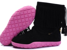 A fashionable nuance, in the form of a velvety-suede edging above the sole, gives the general appearance of the boots a special luxury sports style. The material of the main surface of the model is usually patent leather or faux fur. Limited pink and leopard colors are found.