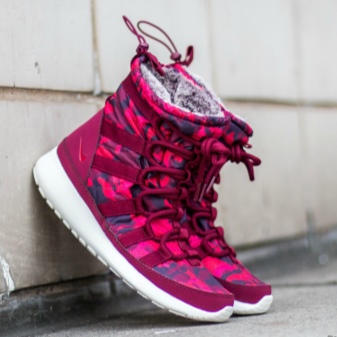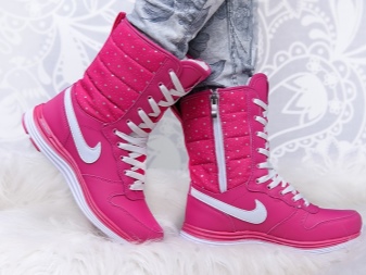 Nike produces women's winter boots and demi-season boots. They differ among themselves in the outer material and the internal warming elements for winter. Boots for spring-autumn are usually equipped with a water-repellent surface and are made either in the form of beloved puffs, or from a high-quality leather substitute.
