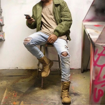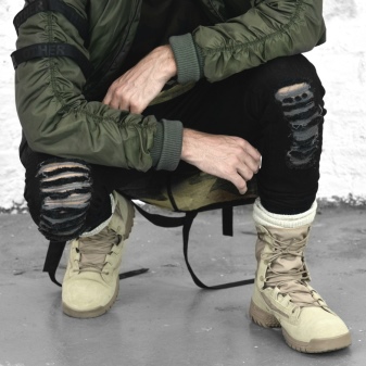 A wide shaft makes it possible to wear such boots with any pants tucked inside, as well as the owner of full legs. Despite the completely minimalistic design, they have a perfectly seasoned sports style and a peculiar chic.