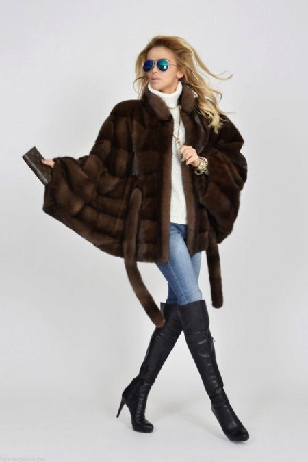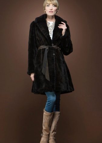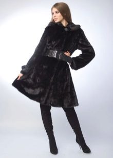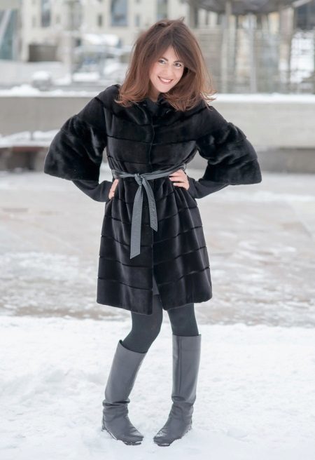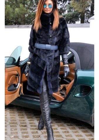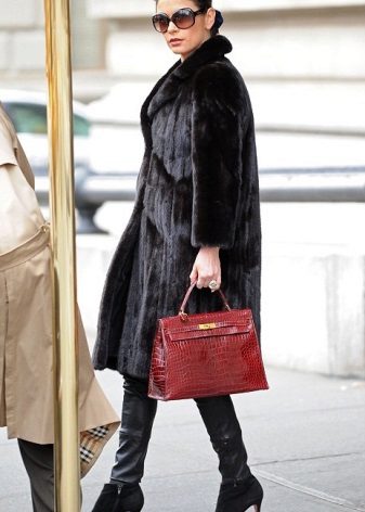 Boots with a low top are very poorly combined with a long mink coat. Shortened shoe length will reduce the effect of rich fur. But clothes with medium length can exist along with similar shoes. In this case, slender legs will be visible, and the fur coat will sparkle in all its splendor. As for the style, but the best option is a straight style and a strict style, although a small flare is acceptable.