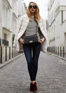 If combined with mink fur boots, they should be narrow and tight. With the help of such shoes it is possible to add a little growth, stretch your legs, give the image of smartness and lightness.