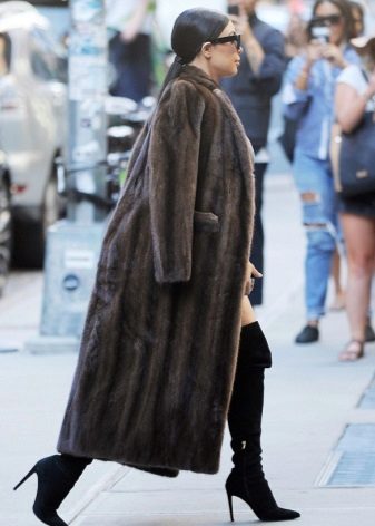 Boots with an accordion can be combined with mink coats at the level of the knee or slightly lower. It should seem like a fur coat is smoothly moving into shoes.