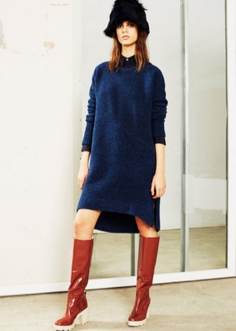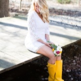 Rubber boots with various dresses look great. Their style should not be strict, it is better to choose models in the style of casual or elongated tunic, not lower than the knee. Tights to this image should be chosen tight.
