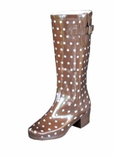 - Not only monophonic models are able to create a mood. Boots with various prints look very original. Animal colors, polka dots or stripes, floral motifs - any variations are perfect for rubber models.