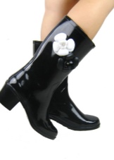 A variety of decorative elements will also allow you to choose an original pair of rubber shoes. Rubber boots with buckles look quite interesting and stylish. Feminine and elegant boots with satin ribbon lacing will be an excellent complement to a romantic look.