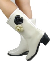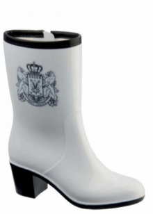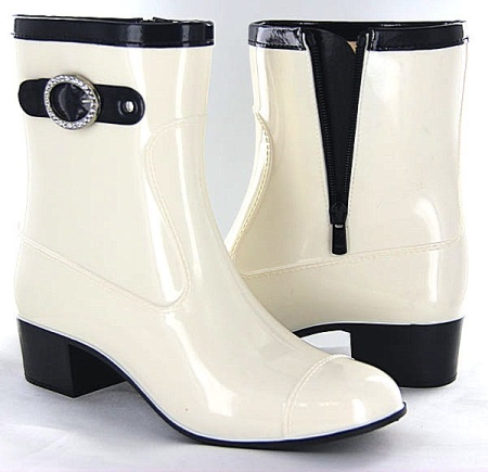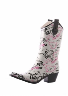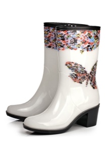 - White models of rubber boots look festive and elegant. White color is very relevant this season. Combining white boots with other details of the wardrobe of light tones, the girl will look very feminine and stylish.