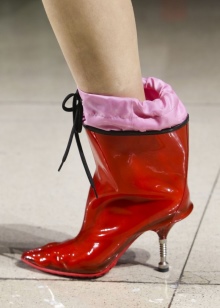 Other designers focus on length: there are knee-length rubber boots, as well as very short models resembling ankle boots. The bootleg can be free and even wide, there are models that fit the leg.