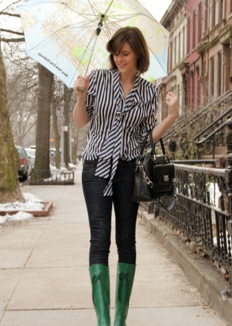 Rubber boots are able to add variety to women's autumn-spring looks. It is best to combine such shoes with everyday style, it is more difficult to choose a model of boots for going to work.
