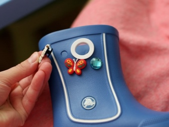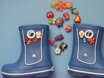 - Another feature of Crocs shoe design is the ability to decorate it with decorative elements - Jibbitz ("Dzhibbits"). These are small brooch-shaped figures with a special mount, suitable for Crocs models in which there are holes. Special holes for Jibbitz are made even in demi-season boots - in the upper part of the bootleg, and not only in children's, but also in adult models.
