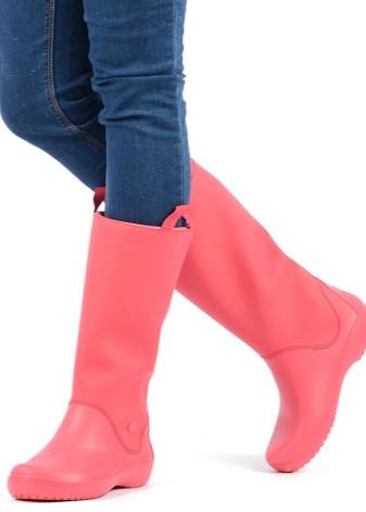 Reviews of female models of Crocs boots are also mostly very positive. Buyers note that they have reconsidered their attitude to waterproof shoes, which before buying crocks seemed to them an option more suitable for giving and gardening. Most of the positive feedback is left on the model with a flexible boot of rubberized material. Buyers note that this shoe looks very neat and stylish, goes well with their usual wardrobe, colors and design allow you to wear such boots for going to work.