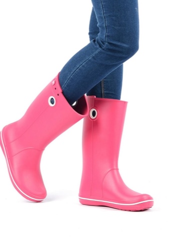 - Crocs rubber boots are also distinguished by rubber inserts on the soles that prevent slipping of shoes.