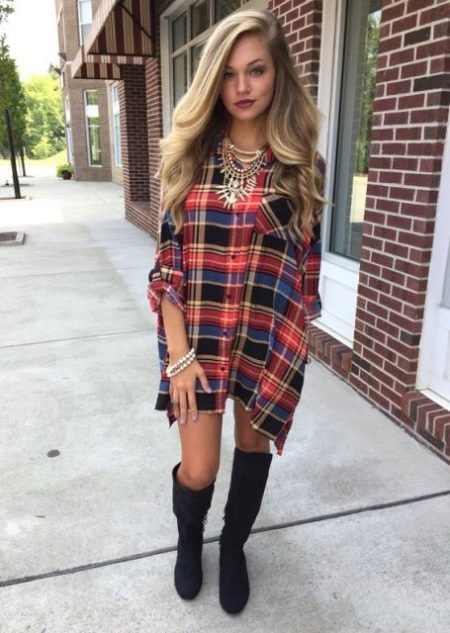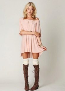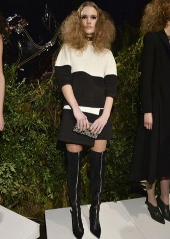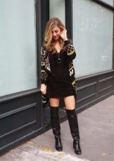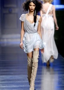 A short dress in this regard gives more room for imagination, because boots with absolutely any height of the shaft can be combined with such a length.