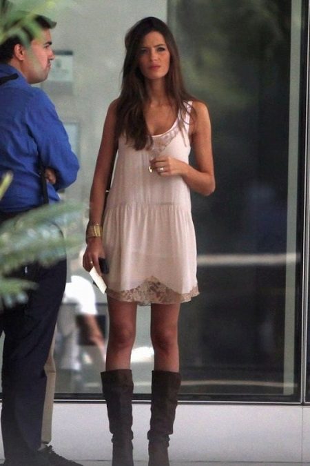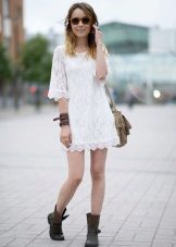 Casual white dress is a rather bold choice, and it is recommended to combine it with boots of light colors - for example, with gray or beige. It is not recommended to combine black boots with a white dress, since such a set looks tasteless.