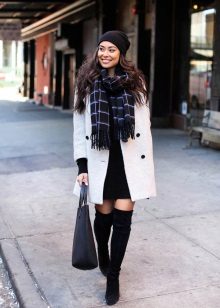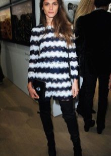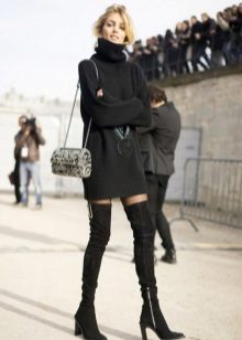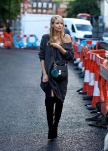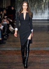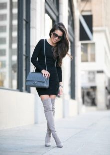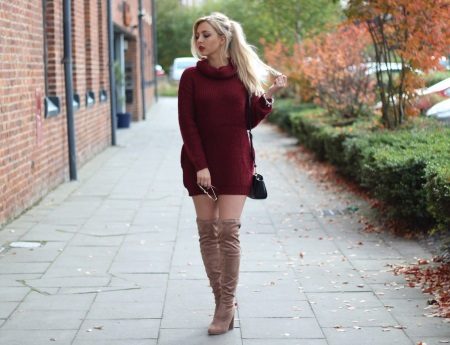 With tight-fitting dress models, over-the-knee boots look great. The distance that should be between the upper edge of the shoe and the lower dress in this case should not be more than 10 centimeters. otherwise you run the risk of appearing vulgar. The same applies to colorful accessories and makeup - such a kit does not imply the wearing of any things and bright lipstick that attract attention.