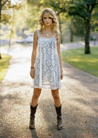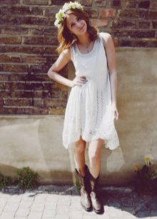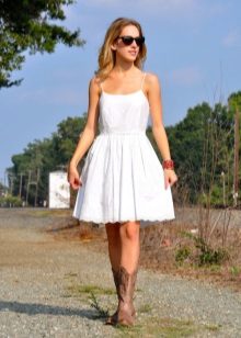 If you are considering what boots to wear with a white dress, then it all depends on where you plan to appear in this image.