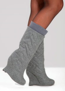 - If there is a need to be indoors in boots, but without outerwear, you need to choose warm knitted soft dresses or sweaters with wide short skirts / tight trousers. If you can not do without jeans, then only black or gray options are acceptable.