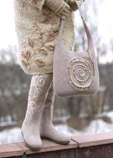 - As for the choice of accessories, you need to try to find a felted handbag, felt, leather (not smooth, but rough and tanned) or fur.