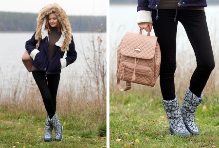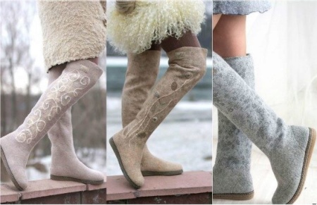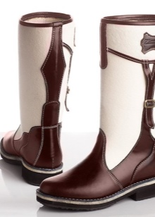 - Combined boots-boots are perfect for the conditions of the Russian winter. In such models, wool / felt can be combined with a huge number of materials with excellent texture. Not only materials can be combined, but also colors.