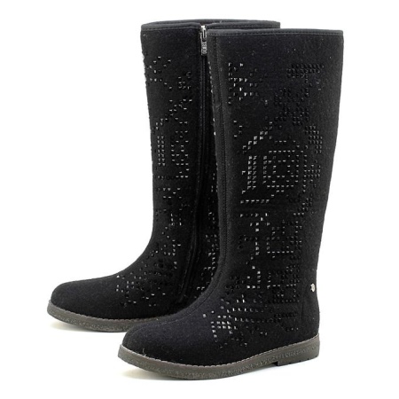 - Children's winter boots are ideal shoes for little fidgets. Due to the natural material, the child’s foot will not sweat with active movement and will not freeze in severe frosts.