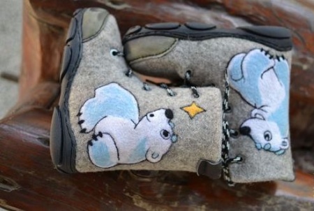 Brand shoes "Umka" - Another decent option for warm, winter shoes, which will be comfortable and safe. Shoes are created exclusively from natural felt, woolen fur and a knitted base are used as a lining.