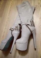 Thin-heeled models look very elegant and elegant. Products with a platform and a rounded toe look beautiful and feminine. Such shoes will be elegantly combined with classic coats or trench coats, as well as with fur coats or fur jackets.