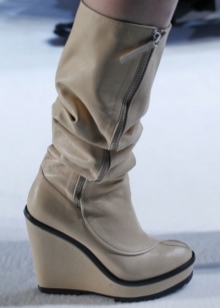 Stylish wedge boots look very original and fresh. Such shoes will be a great solution for fashionistas who want to appear taller and slimmer, but do not like heels. Sharp-nosed wedge models will create a bold and bold look, while products with a rounded toe will perfectly complement the delicate and romantic outfit.