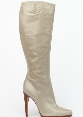 Sexy boots made of iridescent patent leather will create a daring and bold look. With such shoes (especially if it has a high heel), don’t wear too revealing outfits of catchy colors, otherwise the fashionista will look vulgar. Spectacular patent leather boots will suit a bold and self-confident girl who wants to emphasize a bright personality.