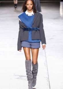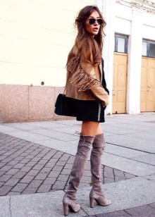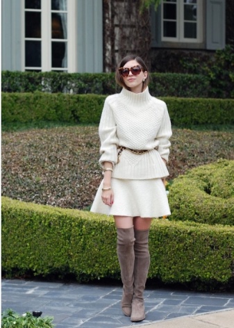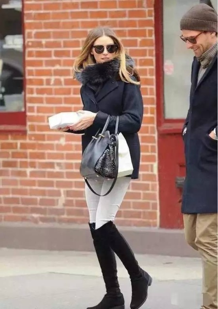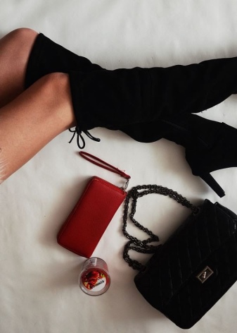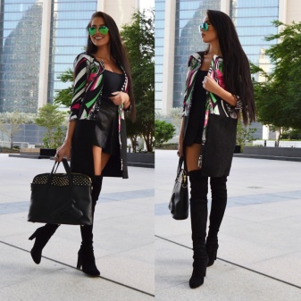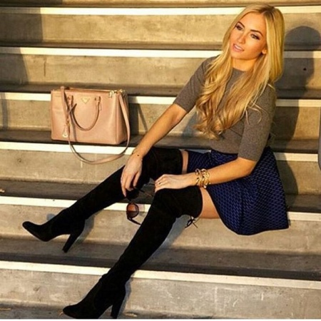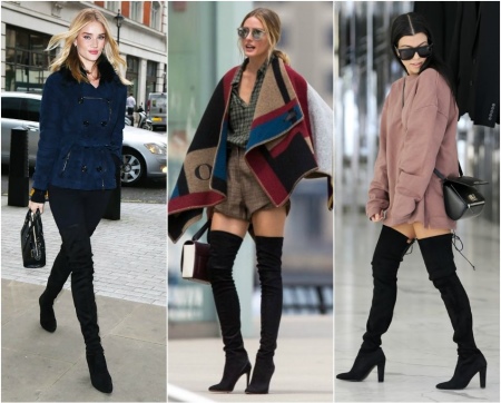 - In an ensemble with high boots, explicit clothing with lace or ruffles should be excluded. Such an image will be vulgar. The combination of such boots with a top with a deep neckline is inappropriate.