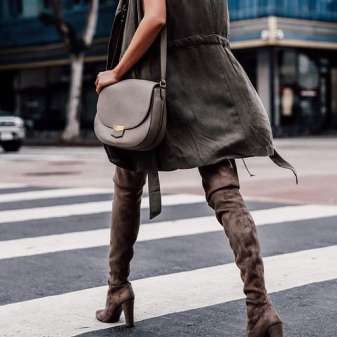 - Elegant low-heeled over the knee boots are great for casual wear. The minimum height of the heel allows the foot to be in a natural position, eliminating the deformation and fatigue of the legs. These shoes with a comfortable shoe will harmoniously complement the style for every day, going out for a walk around the city, a romantic meeting and a formal evening outfit.