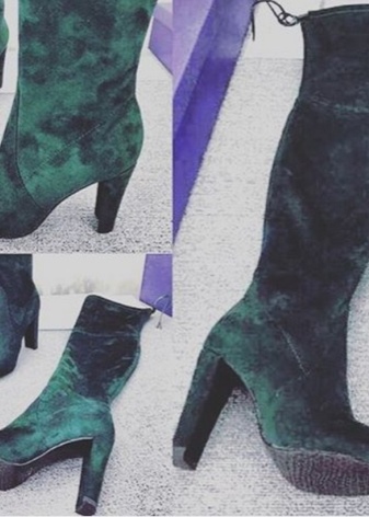 - Many fashionistas choose classic suede ankle boots of dark and swamp shades for the off-season. Their sole is of minimal thickness and smooth, and the heel is square, with a height of not more than 4-5 cm. Such shoes are decorated with vertical lines along the top.