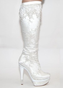 - If you plan to wear boots not only for the wedding, then you should pay attention to the classic models of white leather, for example. Such boots can be used in everyday life.