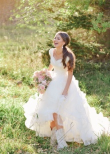 A wedding in the summer, on warm spring or first autumn days, is always beautiful. The bride in an open dress and elegant snow-white shoes is a beautiful, airy, light image.
