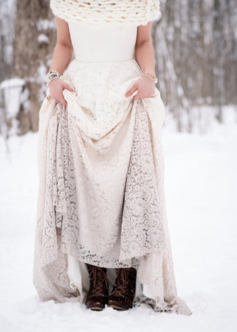 - Platform boots. A convenient, practical and elegant option that fits perfectly in a long, fluffy dress
