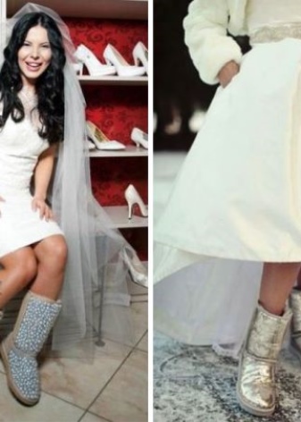 Wedding uggs? Why not! Golden boots will be a harmonious addition to an elegant lace dress of champagne color. And for a white dress, you can pick up snow-white boots. Well, if the girlfriends support the bride and come in the same uggs!