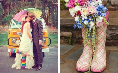 Brides who choose bright, extravagant dresses as wedding dresses prefer dark-blue, red, emerald and lilac boots. The most spectacular wedding looks are built on contrast, for example, a white dress, and shoes, a bouquet and accessories - a rich contrast.