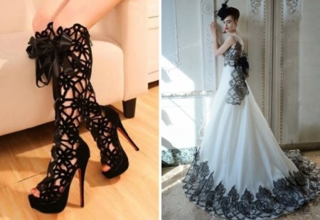 - The style of the boot must necessarily overlap with the pattern of the dress. Especially if the dress is short. For example, if the boots are decorated with lace, then the same lace should adorn the dress.